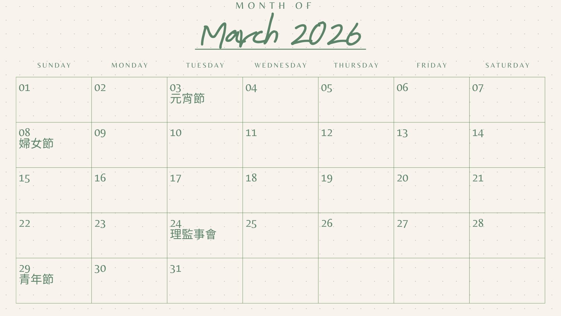 115年3月行事曆
