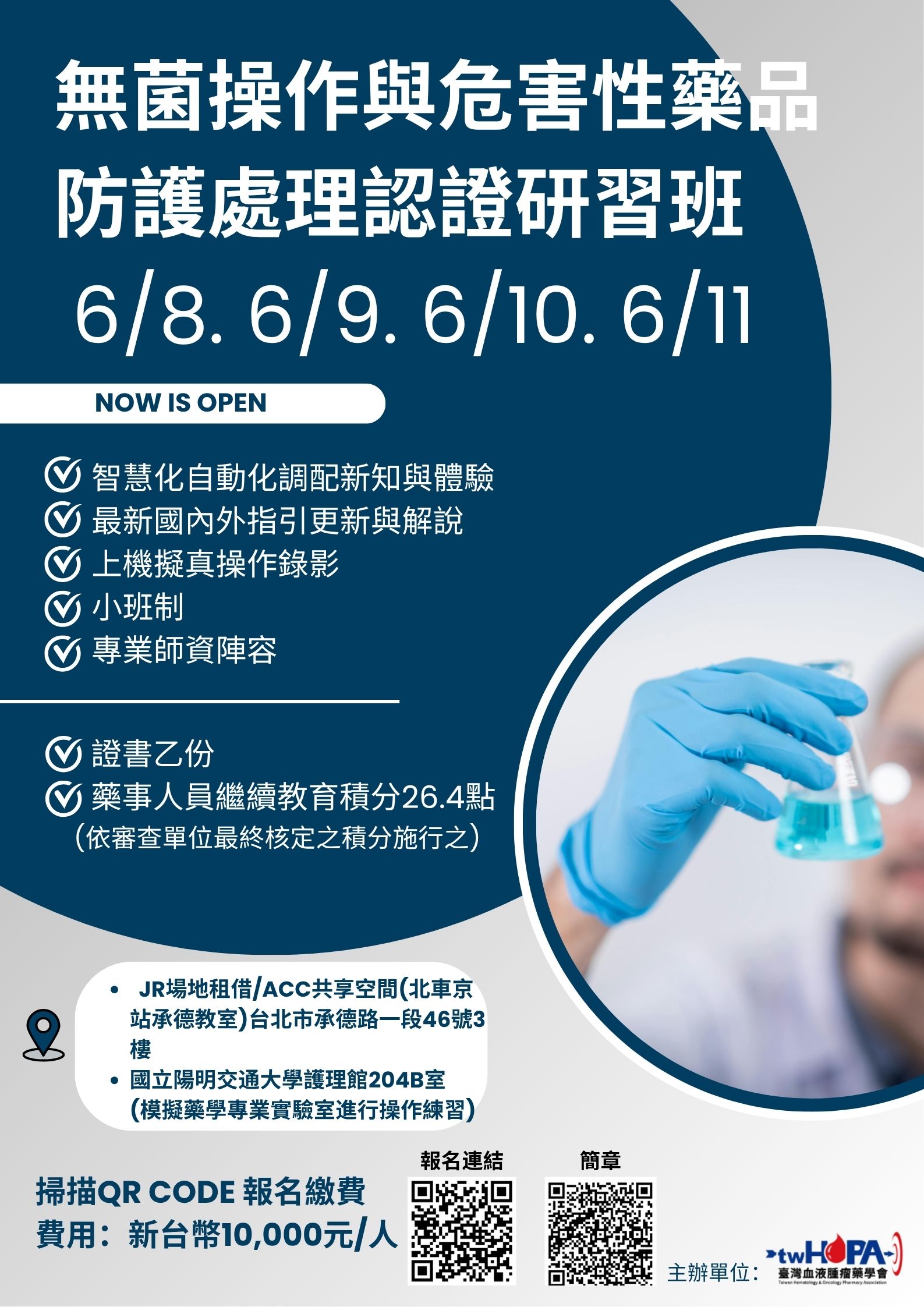 選單 學會講座 ★季/年研討會 ★醫療科技 其他學會課程 教育課程 115年第一梯次無菌操作與危害性藥品防護處理認證研習班 活動日期 : 2026-06-08 NT. 10000 Amivantamab Plus Lazertinib vs Osimertinib in First-line (1L) EGFR-mutant (EGFRm) Advanced NSCLC: Final Overall Survival (OS) from the Phase 3 MARIPOSA Study 活動日期 : 2025-06-06 NT. 0 Join ISOPP’s upcoming webinar: Lymphomas: Focus on Recent Developments November 12, 2024, 05:00 PST 活動日期 : 2024-11-12 NT. 0 Live Webinar on Breast Cancer in Two Weeks! 活動日期 : 2024-10-29 NT. 0 Earn CE Credit: Live Webinar on Immune Checkpoint Inhibitors 活動日期 : 2024-10-21 NT. 0 Non–Small Cell Lung Cancer (NSCLC) with Actionable Mutations 活動日期 : 2024-09-19 NT. 0 Live Webinar on Kidney Cancer in Two Weeks! 活動日期 : 2024-10-29 NT. 0 ASCO 2024 Updates in the Treatment of Renal Cell Carcinoma and Evolving Data on Non-Clear Cell Renal Cell Carcinoma 活動日期 : 2024-09-13 NT. 0 Recommended CE For You 活動日期 : 2024-09-13 NT. 0 Optimizing Transition of Care in Multiple Myeloma: Bridging the Gap Between Academic and Community Settings 活動日期 : 2024-09-12 NT. 0 Earn Credits at our FREE Virtual Event: Patient-Centered Care in Newly Diagnosed Multiple Myeloma 活動日期 : 2024-07-30 NT. 0 FREE CE Activity - Syringe Pumps 活動日期 : 2023-11-20 NT. 0 2024 春季研討會 - 血液與腫瘤藥物治療之輔助性照護探討 活動日期 : 2024-03-30 NT. 會員獨享 2023冬季研討會 - Antibody Drug Conjugate 於乳癌之應用 活動日期 : 2023-12-16 NT. 會員獨享 2023秋季研討會 - 血球增生藥品的使用與探討 活動日期 : 2023-09-23 NT. 會員獨享 2023夏季研討會 - 預防及治療癌症病人嗜中性白血球低下 活動日期 : 2022-07-08 NT. 會員獨享